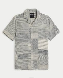 opuštena košulja s uzorkom kratkih rukava prljavo bijeli uzorak muškarci Hollister vrhovi ZV8T990
