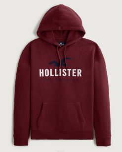 majica s kapuljačom s logotipom tamnocrvena muškarci Hollister vrhovi ZV8T988
