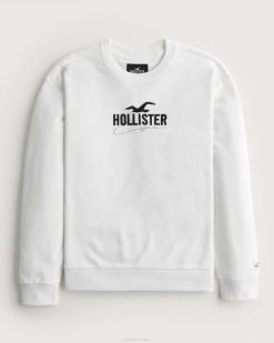 opuštena majica s logom crew bijela muškarci Hollister vrhovi ZV8T956