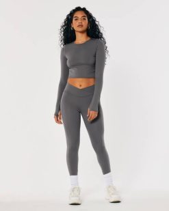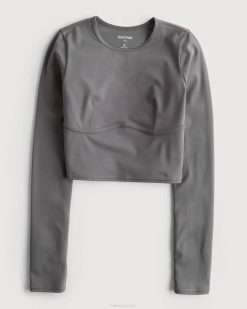 društveni turist dugih rukava kratki šav ispod grudi top siva žene Hollister vrhovi ZV8T399