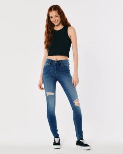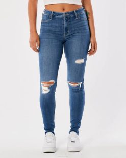 visoke poderane traperice srednjeg pranja srednje poderano pranje žene Hollister dna ZV8T767