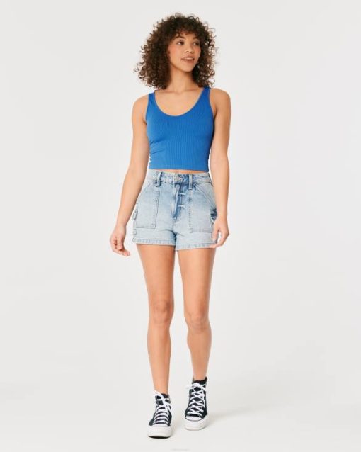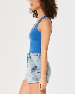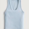 majica s bešavnom rebrastom tkaninom plava žene Hollister vrhovi ZV8T280
