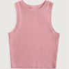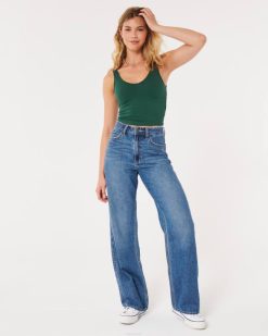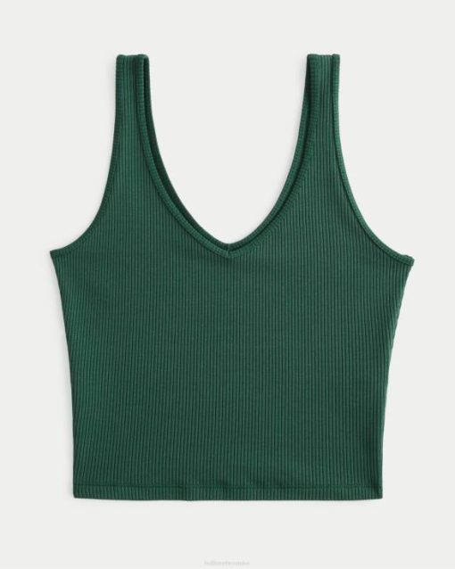 bešavna tkanina s rebrastim tankim v-izrezom tamnozelene žene Hollister vrhovi ZV8T42