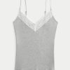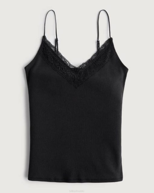 čipkasti obrub rebrasti kami s v-izrezom crno žene Hollister vrhovi ZV8T388