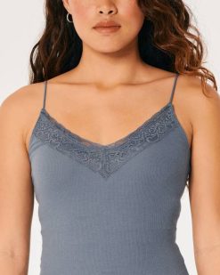 čipkasti obrub rebrasti kami s v-izrezom mornarica žene Hollister vrhovi ZV8T332