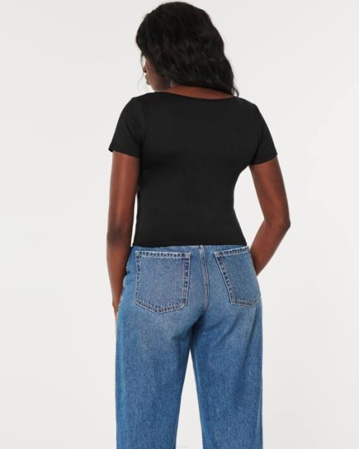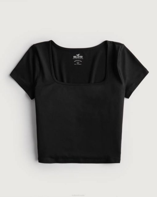 dječja majica s četvrtastim izrezom od bešavne tkanine crno žene Hollister vrhovi ZV8T67