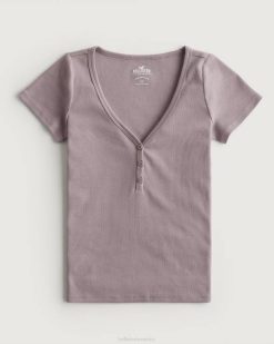 henley kratkih rukava s v-izrezom ljubičasto siva žene Hollister vrhovi ZV8T87
