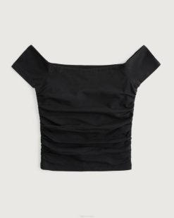 majica s rubovima spuštenih ramena crno žene Hollister vrhovi ZV8T38