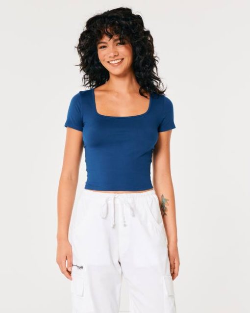 dječja majica s četvrtastim izrezom od bešavne tkanine plava žene Hollister vrhovi ZV8T71