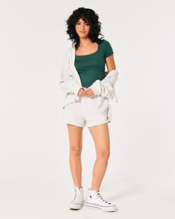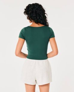 dječja majica s četvrtastim izrezom od bešavne tkanine zelena žene Hollister vrhovi ZV8T148