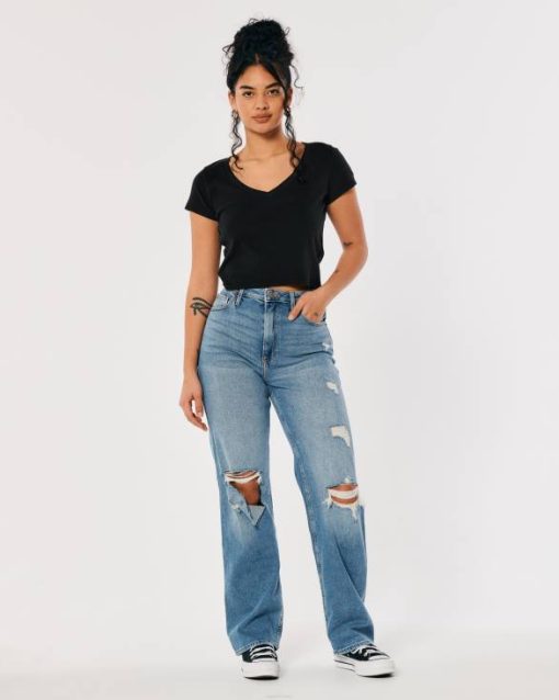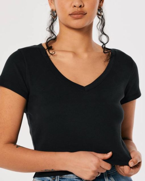 dječja majica s v-izrezom crno žene Hollister vrhovi ZV8T275