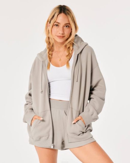 Feel good prevelika majica s patentnim zatvaračem tamno siva žene Hollister vrhovi ZV8T26