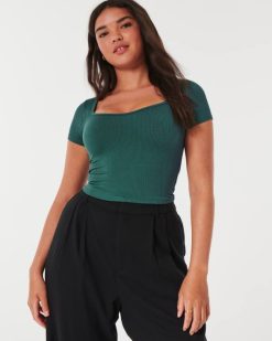 rebrasta majica od bešavne tkanine u obliku srca zelena žene Hollister vrhovi ZV8T249