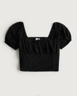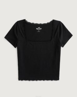 majica s čipkom s četvrtastim izrezom crno žene Hollister vrhovi ZV8T124