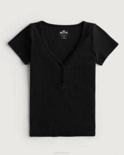 henley kratkih rukava s v-izrezom crno žene Hollister vrhovi ZV8T167