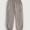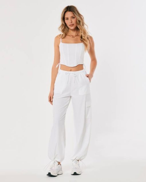 Izrađene od mekane, sportske tkanine, ove padobranske hlače imaju opuštenu siluetu, bočne džepove za teret i porube s vezicom. struk s mekom uzicom, srednje visok struk.