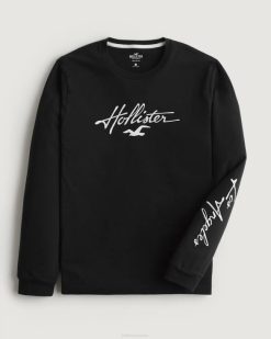 majica s logotipom dugih rukava crno muškarci Hollister vrhovi ZV8T809