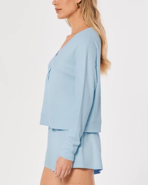 gilly hicks boxy waffle henley svijetlo plava žene Hollister vrhovi ZV8T459