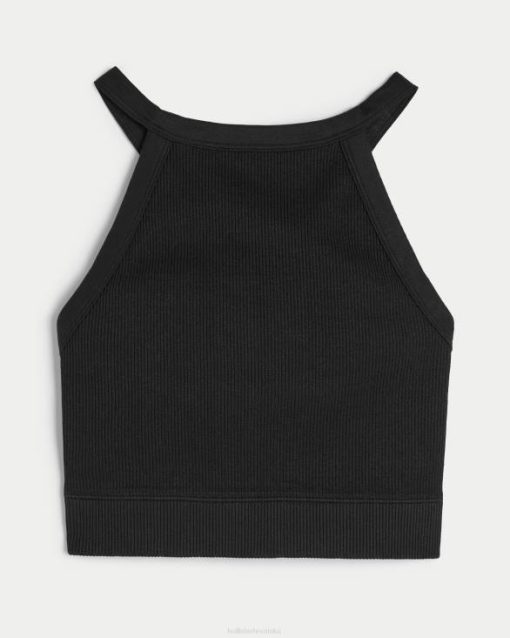 gilly hicks rebrasti bešavni gornji dio grudnjaka s visokim ovratnikom crno žene Hollister vrhovi ZV8T247