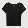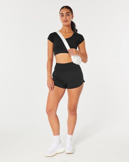 dječja majica s četvrtastim izrezom od bešavne tkanine crno žene Hollister vrhovi ZV8T67
