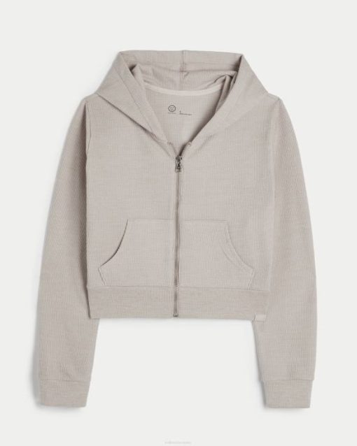 gilly hicks udoban mikro-waffle full-zip bež žene Hollister vrhovi ZV8T136