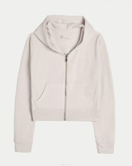 gilly hicks udoban mikro-waffle full-zip prljavo bijelo žene Hollister vrhovi ZV8T98
