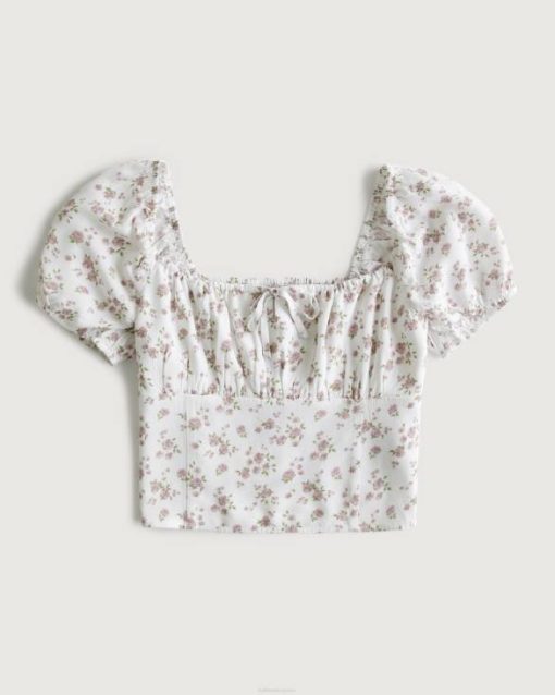 gornji dio kratkih rukava na kravatu bijeli cvjetni žene Hollister vrhovi ZV8T47