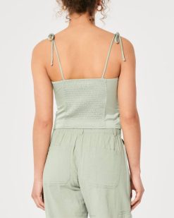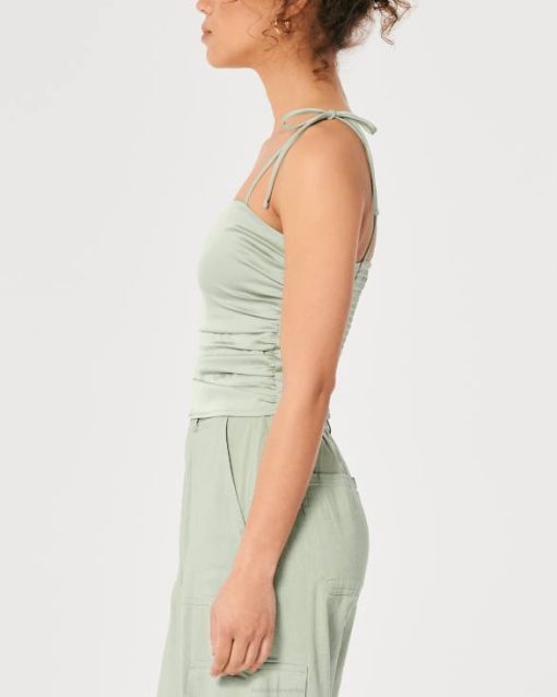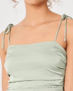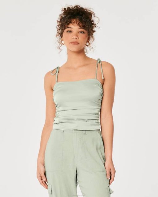 gornji dio od rastezljivog satena s naborima kadulja zelena žene Hollister vrhovi ZV8T210