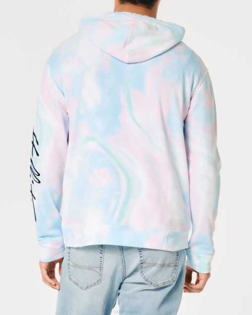 grafička majica s kapuljačom s efektom pranja plava kravata muškarci Hollister vrhovi ZV8T835