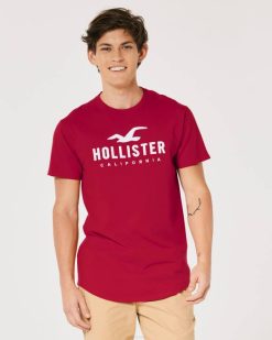 opuštena džepna majica kratkih rukava Crvena muškarci Hollister vrhovi ZV8T1048