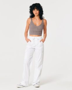 heklana majica s v-izrezom ljubičasto siva žene Hollister vrhovi ZV8T268