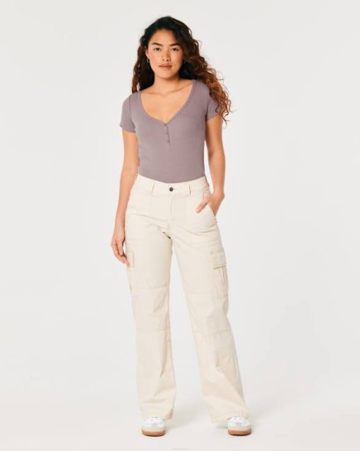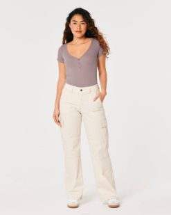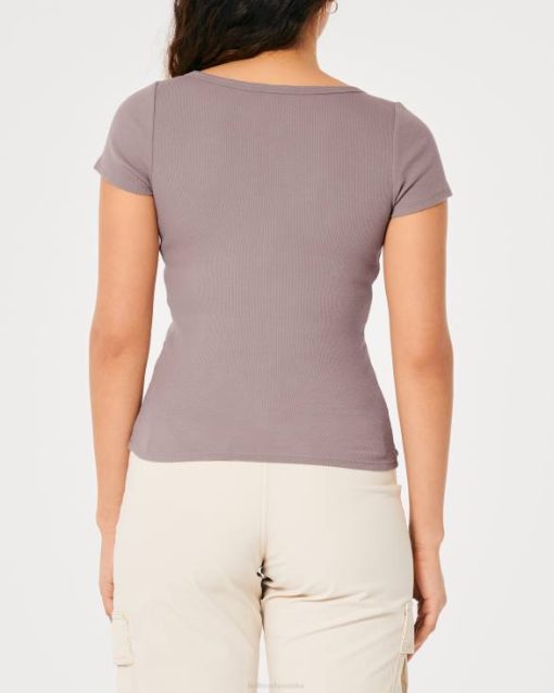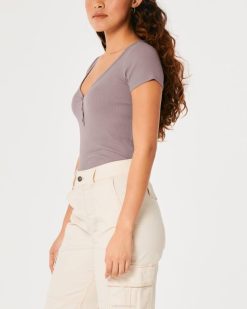 henley kratkih rukava s v-izrezom ljubičasto siva žene Hollister vrhovi ZV8T87