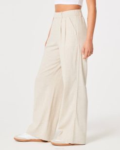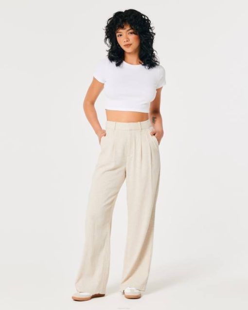 izrađene od super mekane mješavine lana, ove ultra-udobne hlače imaju siluetu širokih nogavica i klasične nabore u struku za izgled po mjeri. ultra visokog struka.