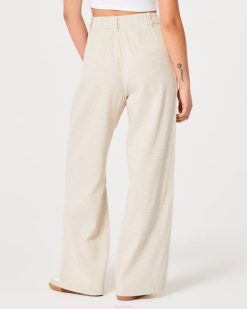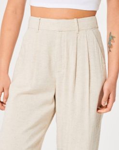 hlače od mješavine lana ultra visokog struka širokih nogavica bijela žene Hollister dna ZV8T490