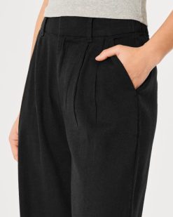 izrađene od super mekane mješavine lana, ove ultra-udobne hlače imaju siluetu širokih nogavica i klasične nabore u struku za izgled po mjeri. ultra visokog struka.