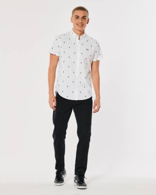 košulja s teksturiranim uzorkom kratkih rukava crna sd/tekstura muškarci Hollister vrhovi ZV8T916