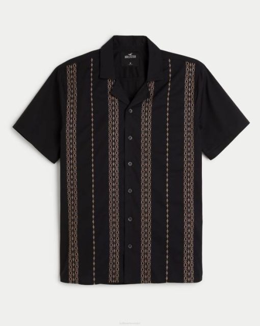 košulja s teksturiranim uzorkom kratkih rukava crna pruga muškarci Hollister vrhovi ZV8T883