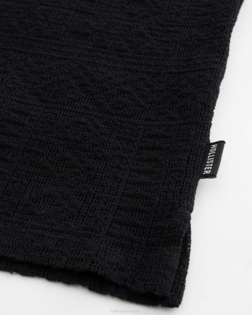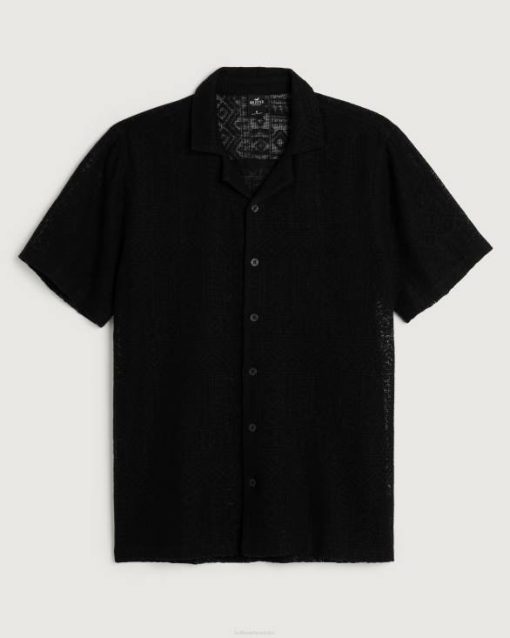 košulja s teksturiranim uzorkom kratkih rukava crna sd/tekstura muškarci Hollister vrhovi ZV8T916