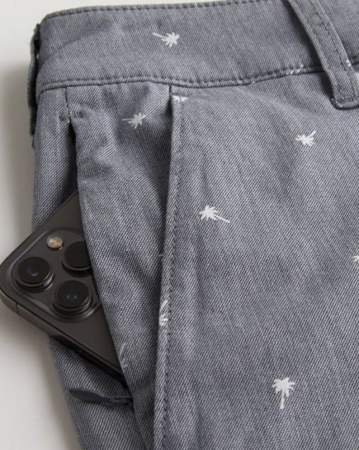 naše klasične kratke hlače s ravnom prednjom stranom izrađene su od naprednog rastezljivog kepera za super udobno pristajanje. cijeli uzorak palme, kopčanje gumbima.