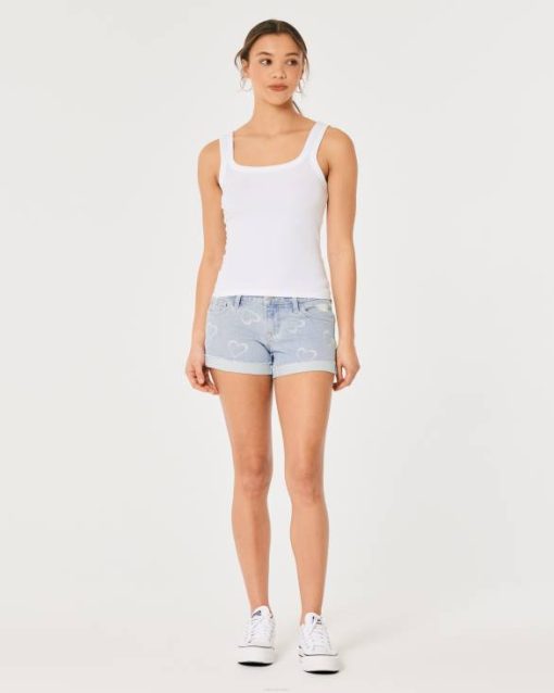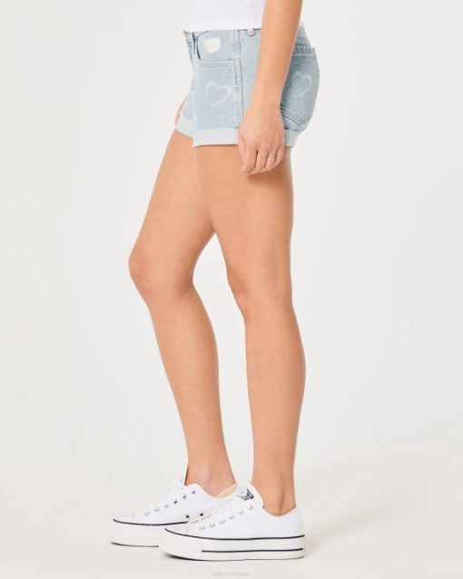 slatke traper kratke hlače izrađene od našeg ultra-udobnog vintage rastezljivog trapera u laganom pranju, s detaljima u obliku srca i rubovima s manšetama. niskog struka, 3” unutarnjeg ruba.