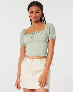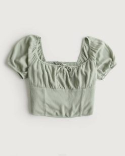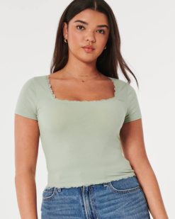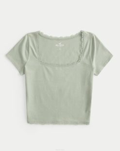 majica s čipkom s četvrtastim izrezom kadulja zelena žene Hollister vrhovi ZV8T232