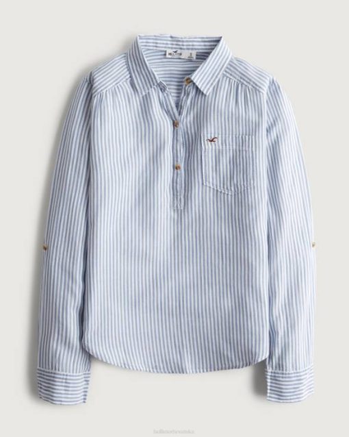 laka lagana pamučna popover košulja svijetloplava pruga žene Hollister vrhovi ZV8T299