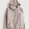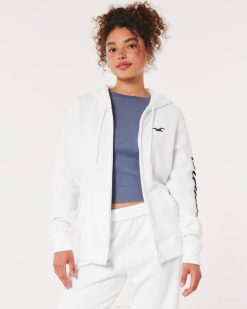 laka majica s kapuljačom i logotipom s patentnim zatvaračem bijela žene Hollister vrhovi ZV8T367