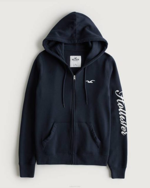 laka majica s kapuljačom i logotipom s patentnim zatvaračem mornarsko plava žene Hollister vrhovi ZV8T119