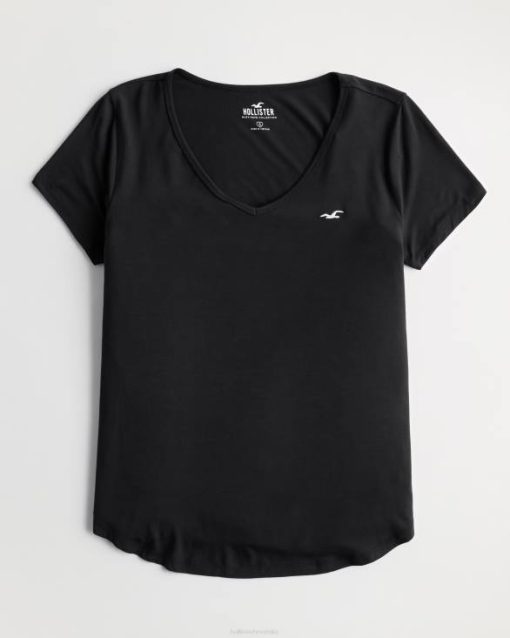 laka majica s logotipom s v-izrezom crno žene Hollister vrhovi ZV8T36