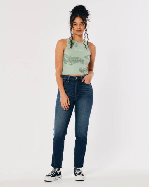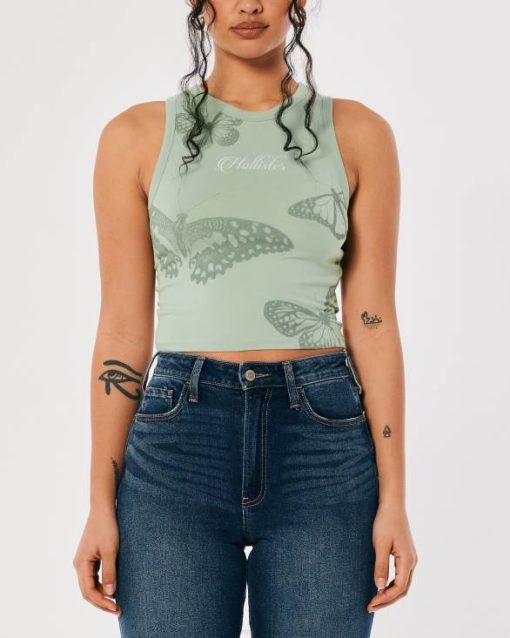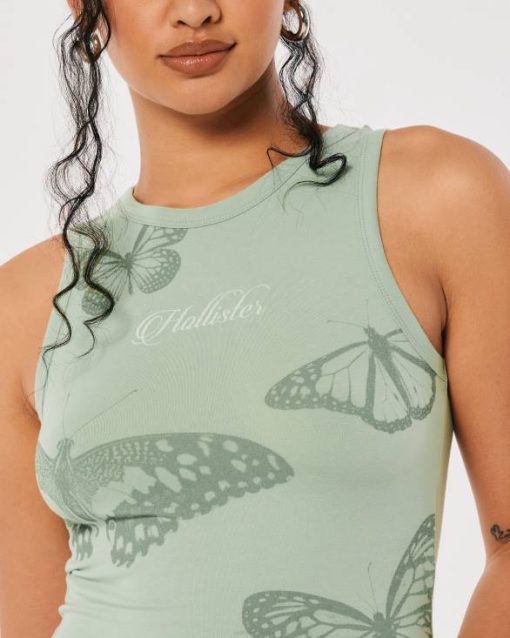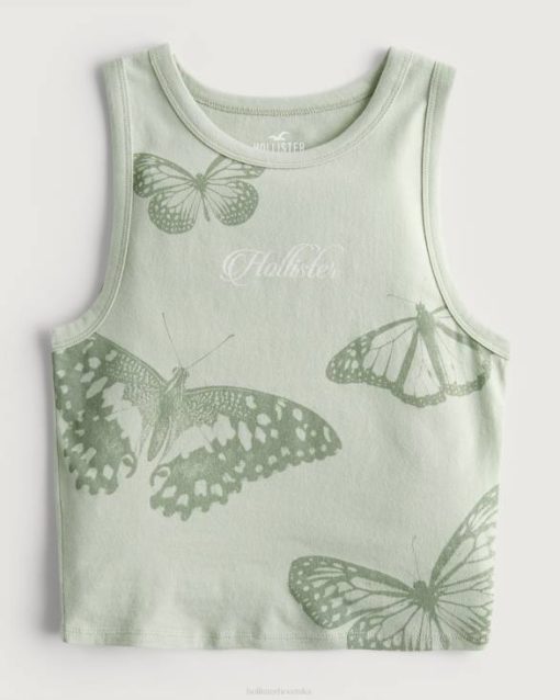 leptir grafički tenk s visokim vratom svijetlo zelena žene Hollister vrhovi ZV8T254