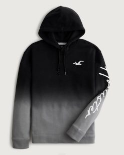 majica s kapuljačom s ombre logotipom crni do sivi ombre muškarci Hollister vrhovi ZV8T864