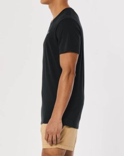 henley kratkih rukava s v-izrezom crno žene Hollister vrhovi ZV8T167