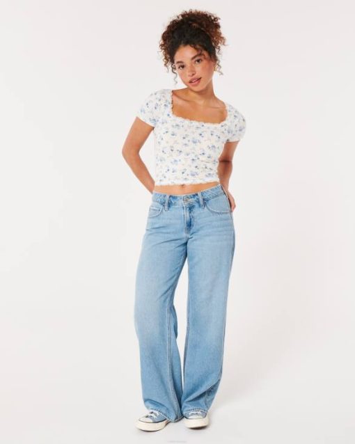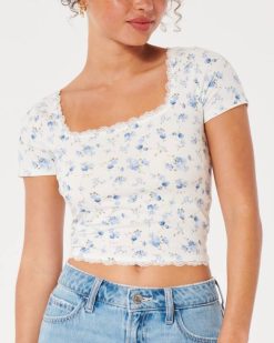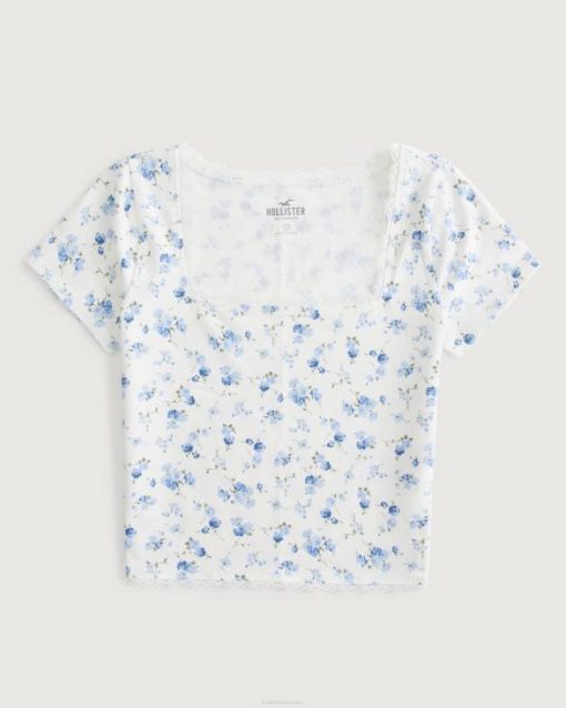 majica s čipkom s četvrtastim izrezom bijeli cvjetni žene Hollister vrhovi ZV8T37