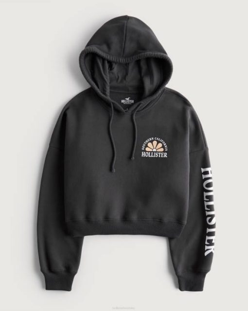 majica s kapuljačom s crop printom tamno siva žene Hollister vrhovi ZV8T245